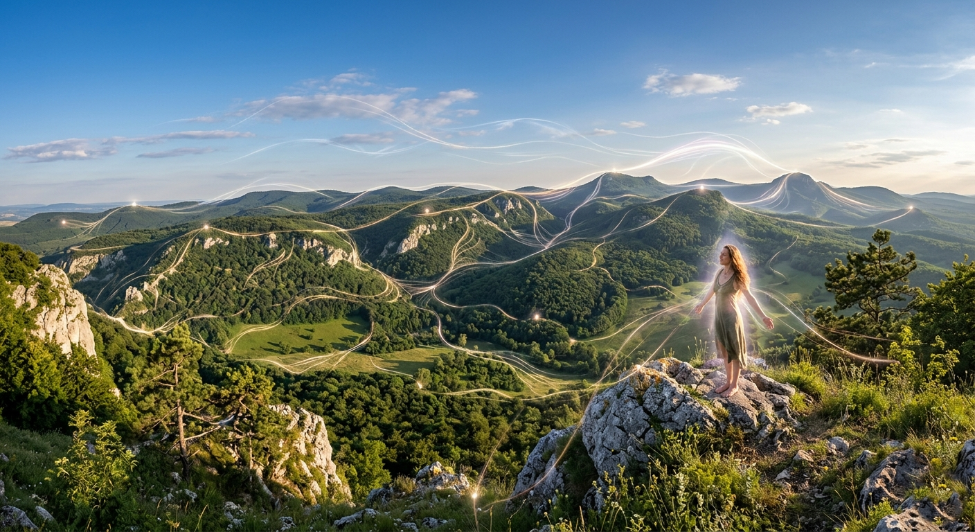 A hegygerincei olyanok, mint az idegpályák, amelyekben a föld energiája áramlik. A völgyei a lélegző tüdők, ahol a szél üzenetet hordoz. A karsztüregei a szívkamrák, ahol a föld dobbanása visszhangzik. A rétjei a nyitott tenyerek, amelyek fényt gyűjtenek.