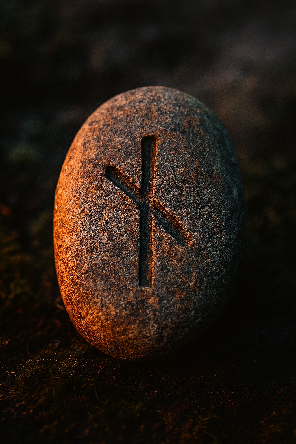 Vizualizáció: Képzeld el a rúnát a gyökércsakrában, mint egy vöröses fényű szikra, amely nyomás alatt izzik.