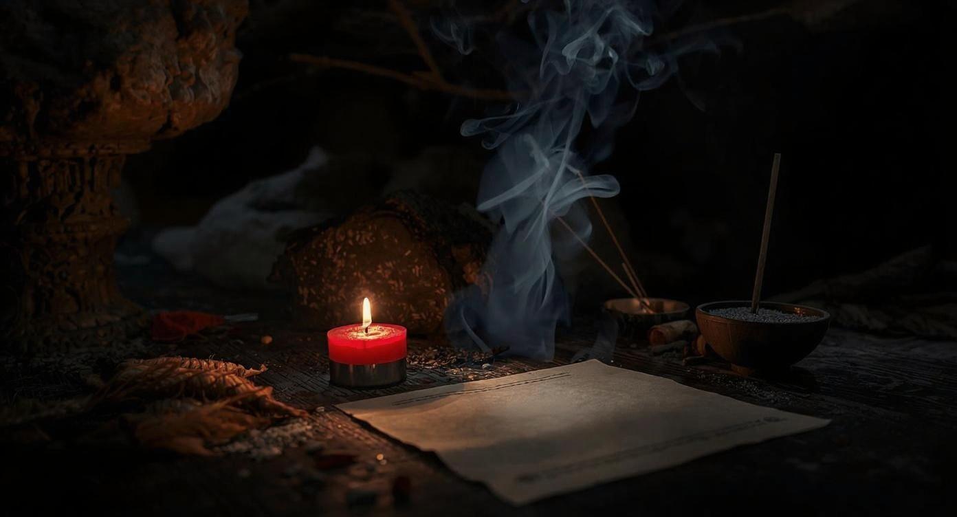 Eszközök: Vörös gyertya, Nauthiz rúna (kőbe vagy papírra rajzolva), füstölő (mirha, cédrus), egy kis tál homok vagy hamu.