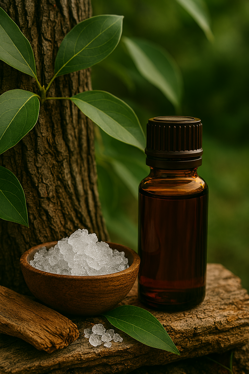 A kámforolaj a babérfélék családjába tartozó kámforfa egy eredetileg Dél- Kínában honos növény, amely mára egész Kelet- és Délkelet-Ázsiában előfordul. Európa mediterrán területeire é szubtrópusi éghajlatú szigeteire, például Madeirára arab közvetítéssel jutott el. Ez az örökzöld fa igen hosszú életű, évszázadokig is elél, az ázsiai gyógyászat egyik legfontosabb gyógynövénye. Alkalmazása sokrétű, az ízesítéstől a gyógyításig és az aromaterápiáig számtalan területen bizonyított kedvező élettani hatása. Légúti problémák esetén a légzés könnyítésére, a légutak tisztítására, a hörgők görcseinek csillapítására párologtatóként, krémként é borogatásként használatos. Reumatikus, ízületi és izompanaszokra, sportsérülésekre és azok megelőzésére bedörzsölés útján és fürdőként is használható. Légúttisztító, keringésfokozó és fájdalomcsillapító hatású, reumás panaszokra és izomfájdalomra, masszázs és borogatás formájában alkalmazott illóolaj. A keringés fokozására. Mozgásszervi megbetegedések gyógyításában, végtagfáradtság kezelésére alkalmas masszázskrémek és fürdőolajok összetevőjeként. Sérülések, rándulások, zúzódások és ficamok kezelésére kámforolajos masszázskrémet készíthetünk. Köhögés esetén a légzés könnyítésében inhaláló szerként, mellkasi légzéskönnyítő krémként, hörgőerősítő balzsamként, illóolajként és párologtatatóként alkalmazható. Frissítő hatású illóolaja elősegíti a könnyű légzést és a légutak megtisztulását. A kámfor a végtagok barátja, lábfürdőként alkalmazva serkenti az egész test vérkeringését, sportolás előtt bedörzsölve magunkat megelőzhetjük az izomhúzódások és görcsök kialakulását. Borogatásként lázcsillapításra ajánlott. Csillapítja a fájdalmat és a viszketést, így rovarcsípések és vízhólyagok kezelésére is használhatjuk.