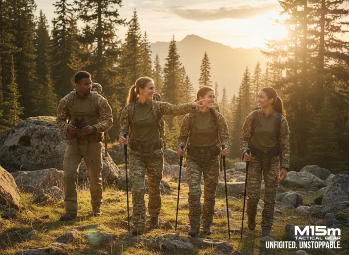 Az M15 Combat Shirt színvilága — az olívzöld és a terepminta találkozása — összeolvad a föld színeivel, a fák árnyékával és a hegyek csendjével. Ez a felső nem hivalkodik. Egyszerűségében rejlik az ereje: testközeli, mégis szabad; erős, mégis kényelmes.